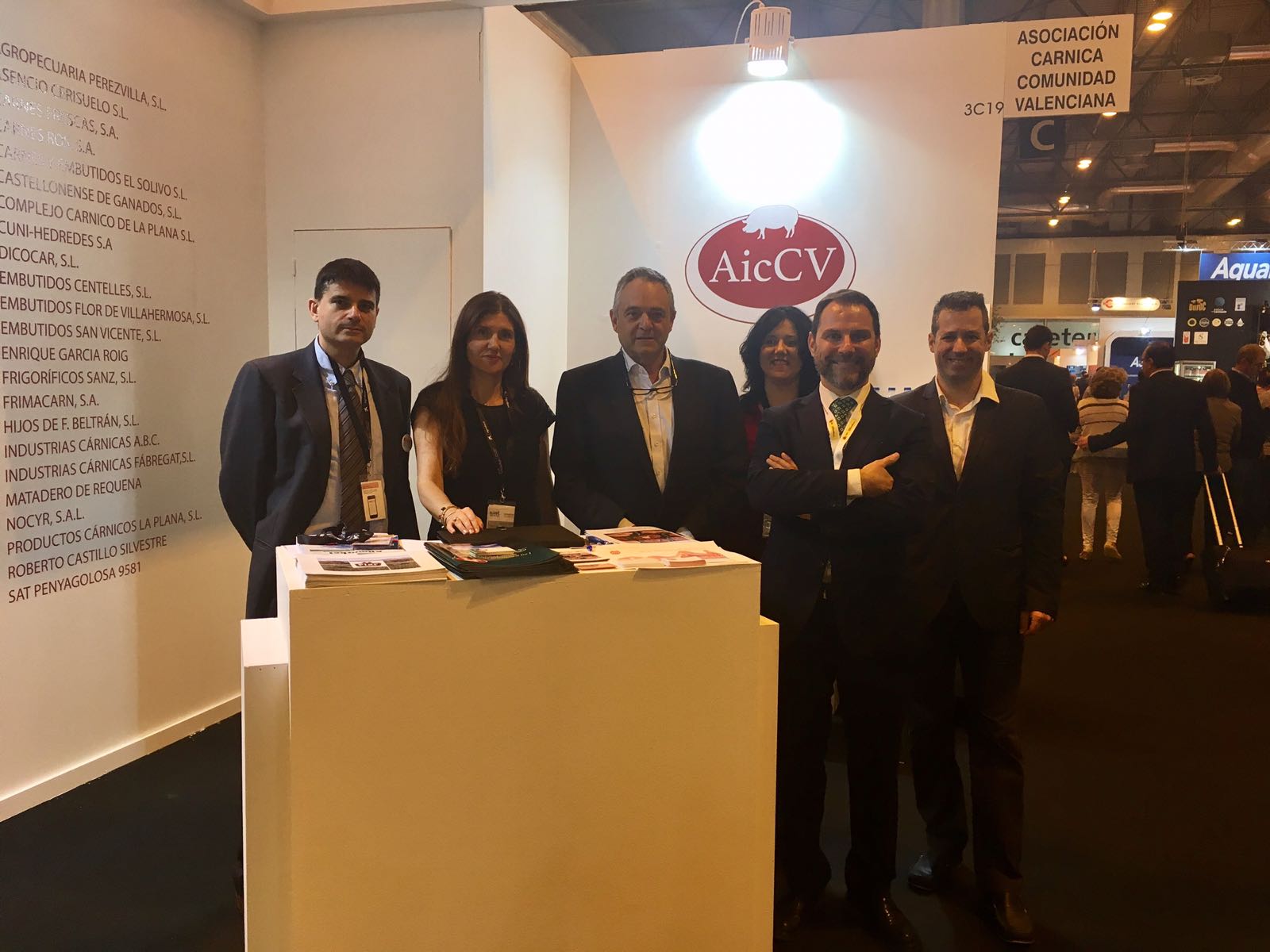 El Secretario General de FEDACOVA, Sergio Barona, visitó en Meat Attraction el stand común de las Asociaciones de Industrias Cárnicas de Valencia y Castellón, un espacio único para la promoción de las diferentes especialidades de la Industria cárnica valenciana que contó con la presencia de la Presidenta de AICS, Dª Rosa Flor, del Presidente y Secretario de AICV, Jaime Álvarez y Miguel Ángel Navarro, respectivamente, así como del Vicepresidente de FEDACOVA Fernando Cervera. Todos ellos mostraron su satisfacción ante el desarrollo de este evento que ha logrado reunir en su espacio a una gran afluencia de visitas, las cuales serán remitidas próximamente en forma de informe por parte del Secretario de AICV, Miguel Ángel Navarro. Podemos concluir indicando que esta 1ª edición ha resultado altamente satisfactoria, confiando en que se repita próximamente.